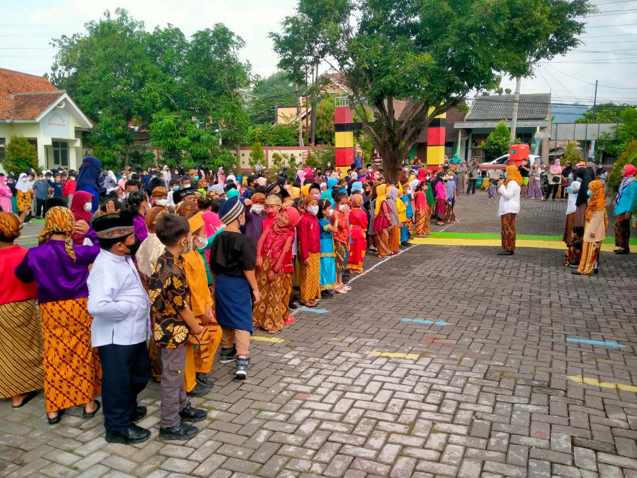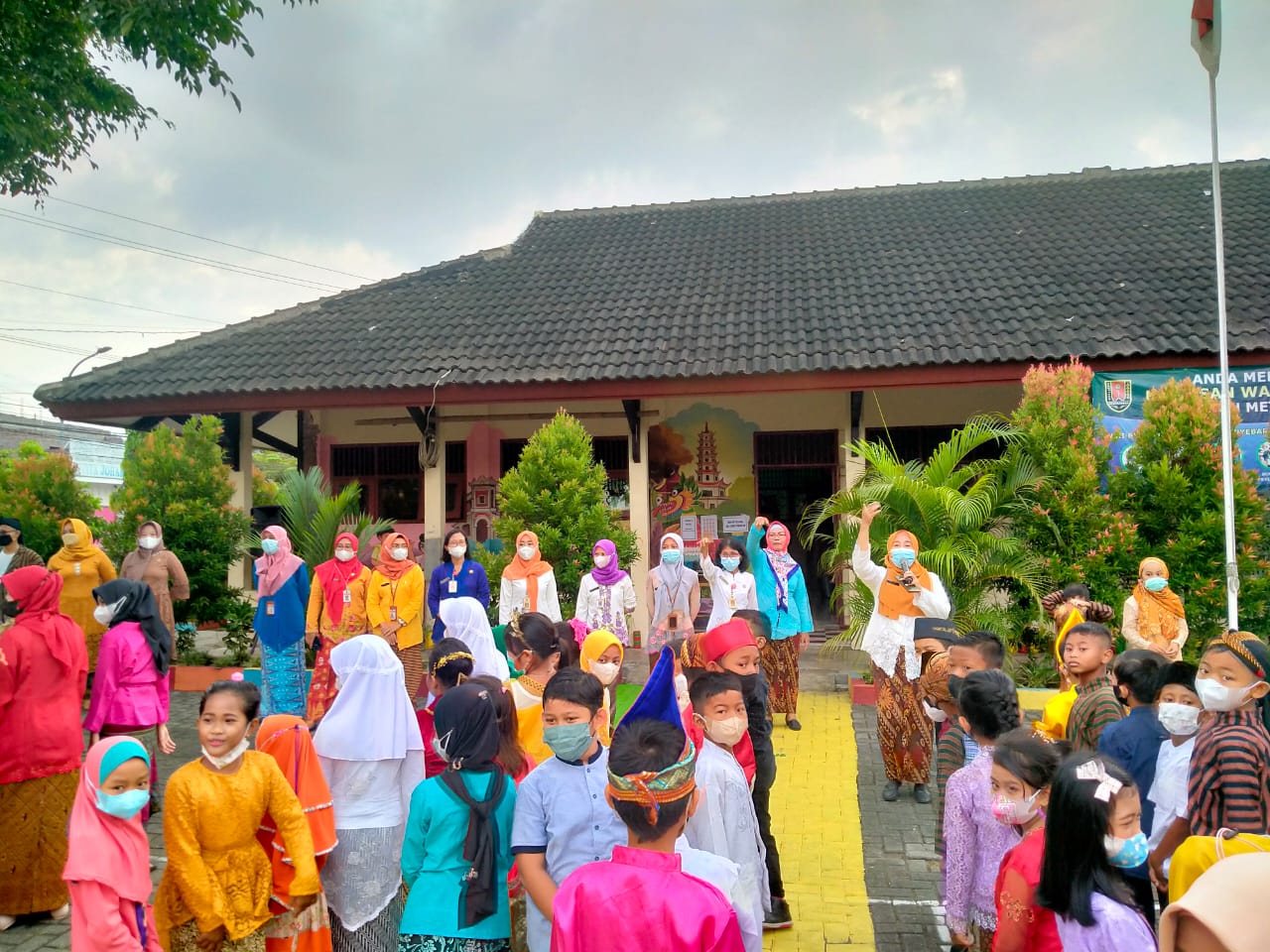 (2 Mei 2022) - Upacara memperingati Hari Pendidikan Nasional SDN Meteseh, diselenggarakan dengan peserta didik dan guru mengenakan baju adat daerah.